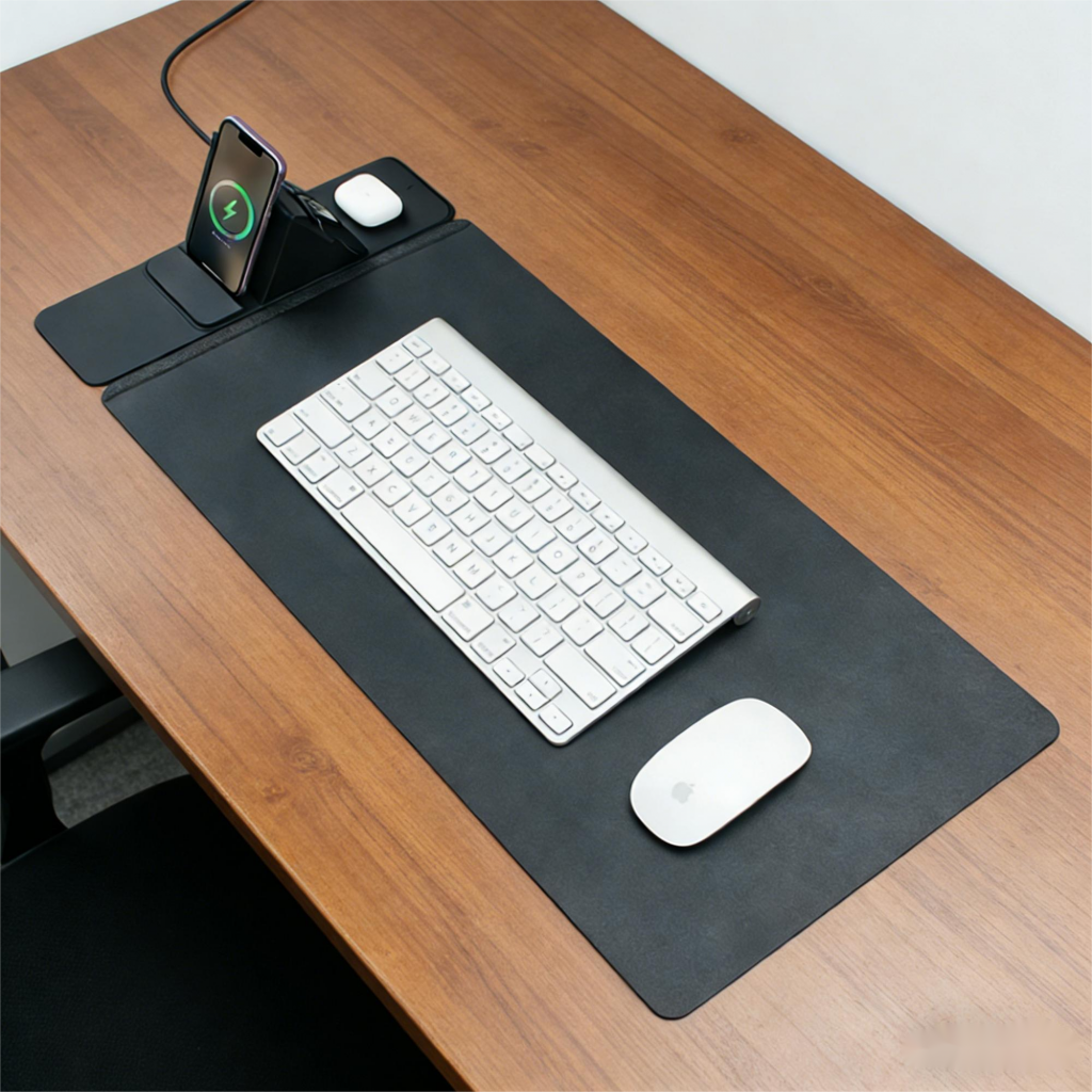 wireless charging desk mat with foldable phone holder