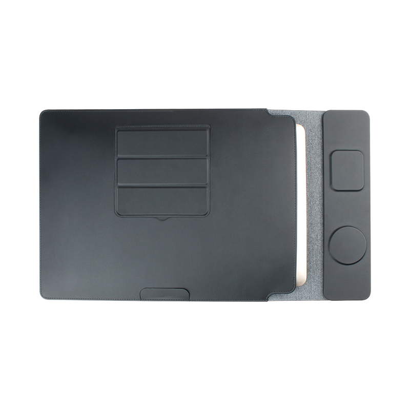 14inch/16inch Macbook sleeve with wireless charging for phone and earbuds Leather 15W charging magnetic laptop sleeve manufacture